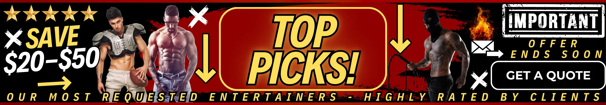 Looking to hire professional male strippers for your next celebration? Our elite male entertainers are available for bachelorette parties, despedidas de soltera, ladies’ nights, girls’ night out, birthday parties, divorce parties, LGBTQ+ events, and private parties nationwide. We also offer upscale party services including male butlers, cabana boys, shirtless bartenders, and sip & paint male models, all carefully selected for their looks, personality, and professionalism. Whether you’re booking one entertainer or a full male revue experience, we make it easy to find the best male entertainers near you for a fun, stylish, and unforgettable event.